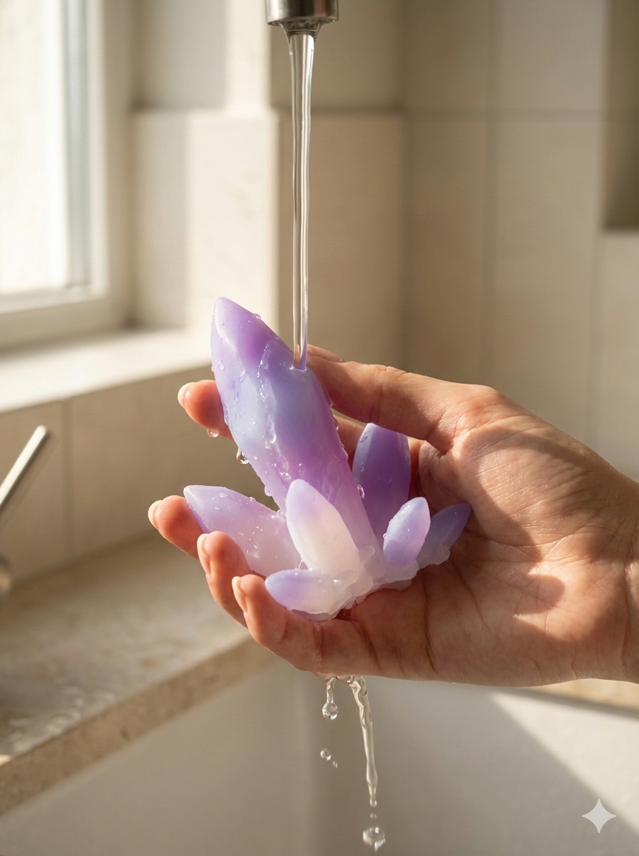 nous vous recommandons de laver votre Krystal à l’eau tiède avec un savon doux, sans composants agressifs, en massant délicatement toute la surface, puis en rinçant abondamment.