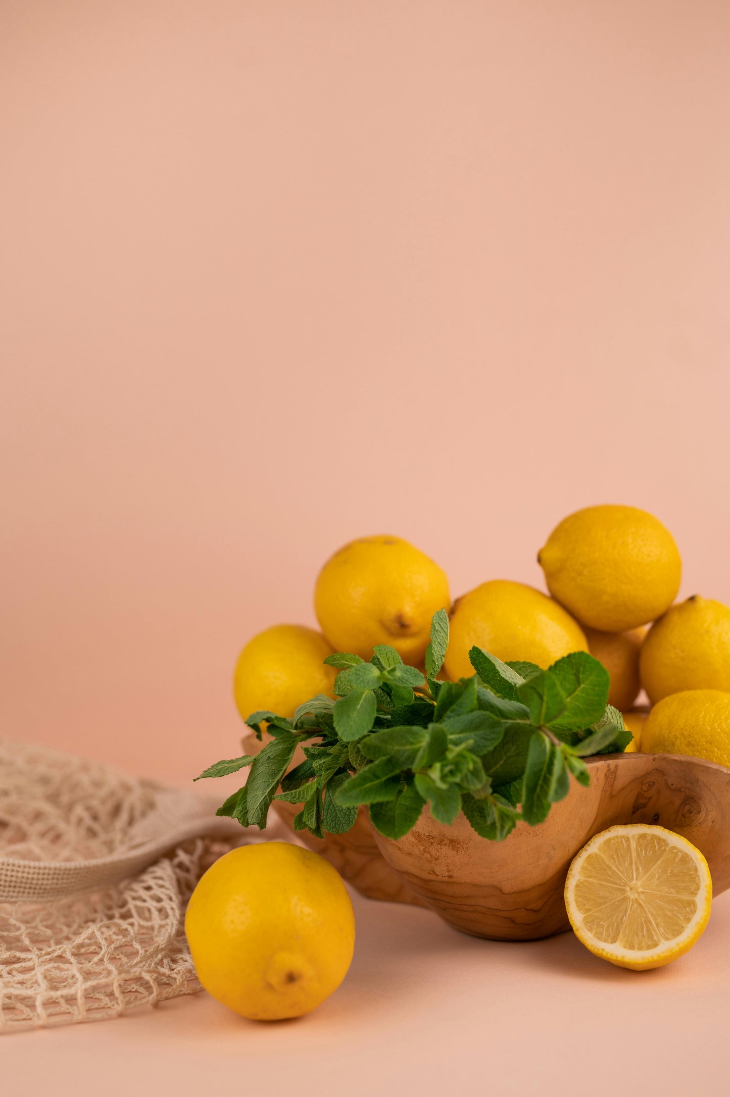 Portrait d'une femme sereine dont le visage est à moitié illuminé et à moitié dans l'ombre. Son visage est partiellement caché pas des fleurs mimosa jaunes. la lumière est douce. L'image dégage une atmosphère douce mais stimulante et joyeuse.
